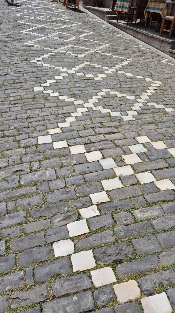 - „Stadt aus Stein“: Typische graue Schieferdächer und massive Steinhäuser, oft mehrstöckig und befestigt.